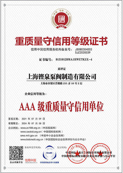 上海(hǎi)亚洲色中文字幕在线激情泵閥製造有限公司是集科研、生產及銷售於一體的泵業製造廠(chǎng)家。榮譽資質(zhì)· honor